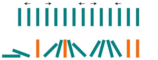 Similarly, the dominoes falling to the right push their adjacent dominoes standing on the right.