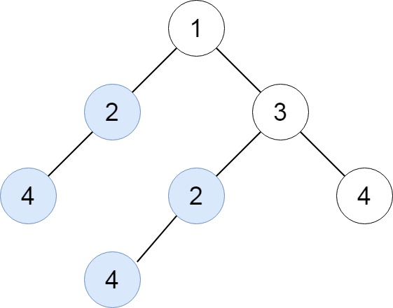 Input: root = [1,2,3,4,null,2,4,null,null,4]