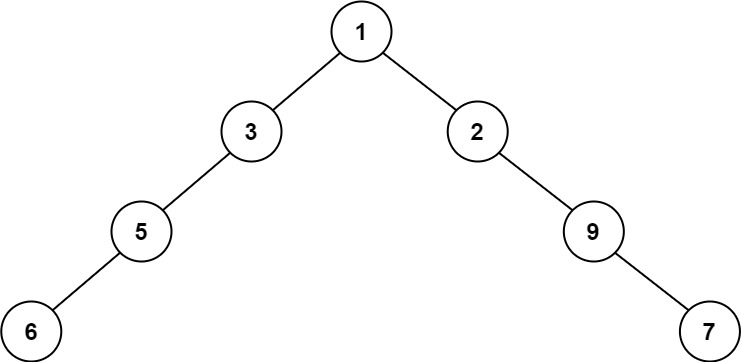 Explanation: The maximum width existing in the second level with the length 2 (3,2).Input: root = [1,3,2,5,null,null,9,6,null,null,7]