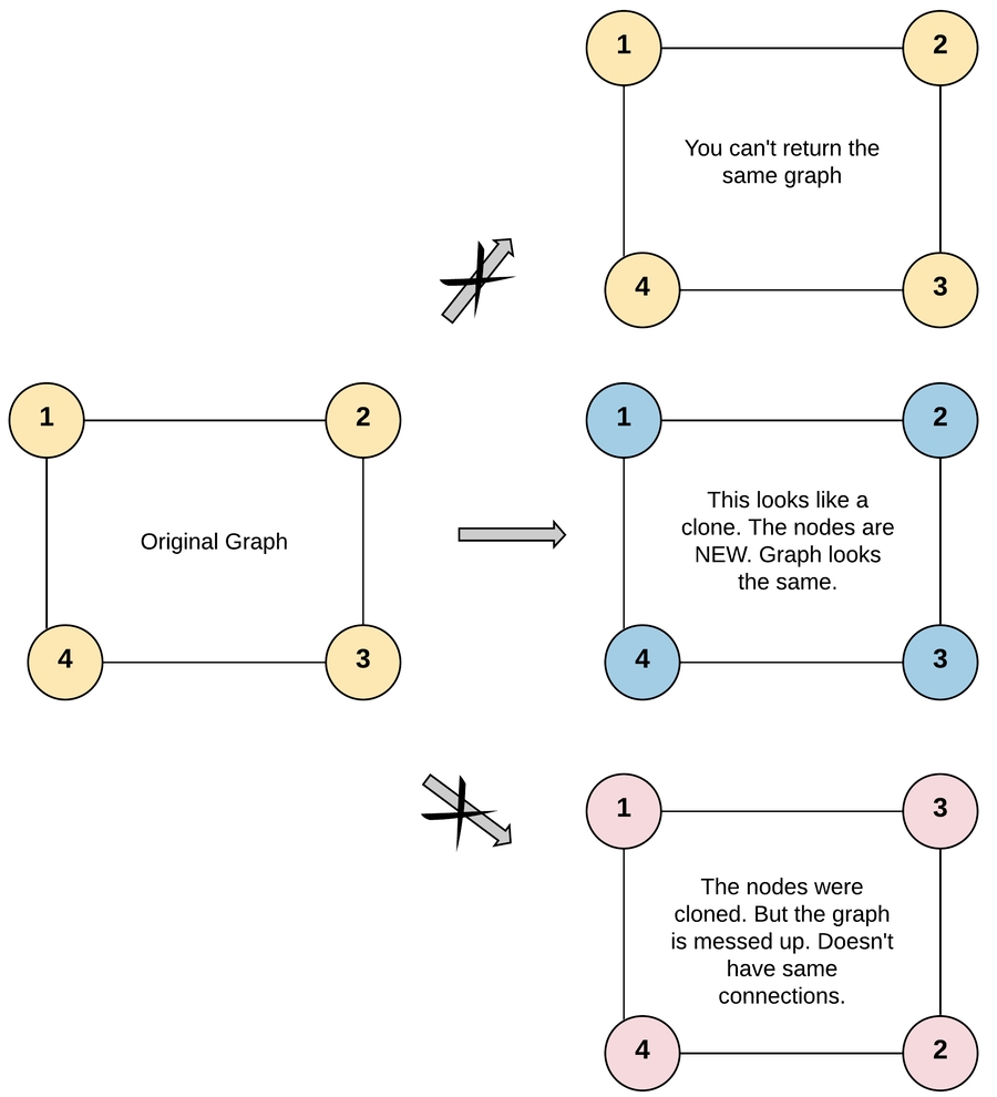 The given node will always be the first node with val = 1. You must return the copy of the given node as a reference to the cloned graph.
