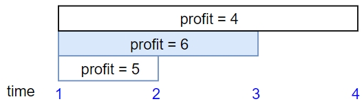 Input: startTime = [1,1,1], endTime = [2,3,4], profit = [5,6,4]