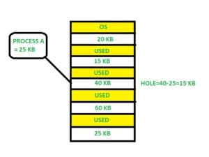 External Fragmentation: There will be external fragmentation in spite of absence of internal fragmentation.