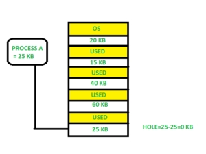 In Partition Allocation, when there is more than one partition freely available to accommodate a process’s request, a partition must be selected. To choose a particular partition, a partition allocation method is needed. There are different Placement Algorithm: A. First Fit B. Best Fit C. Worst Fit D. Next Fit