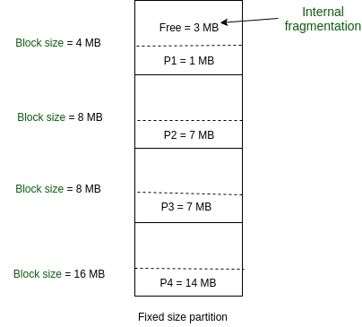 This is the oldest and simplest technique used to put more than one process in the main memory. In this partitioning, the number of partitions (non-overlapping) in RAM is fixed but the size of each partition may or may not be the same. As it is a contiguous allocation, hence no spanning is allowed. Here partitions are made before execution or during system configure.