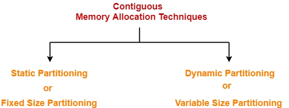 Contiguous Memory Allocation:- In contiguous memory allocation, a process can be stored only in a contiguous fashion.