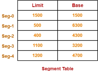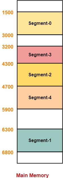 In accordance to the above segment table, the segments are stored in the main memory as-