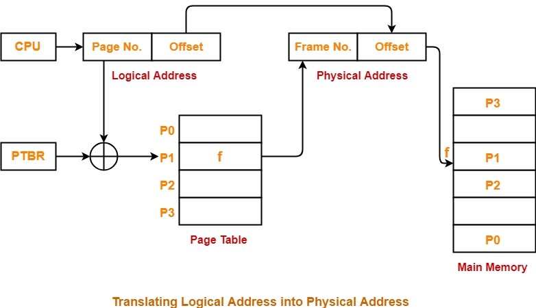 The following diagram illustrates the above steps of translating logical address into physical address-